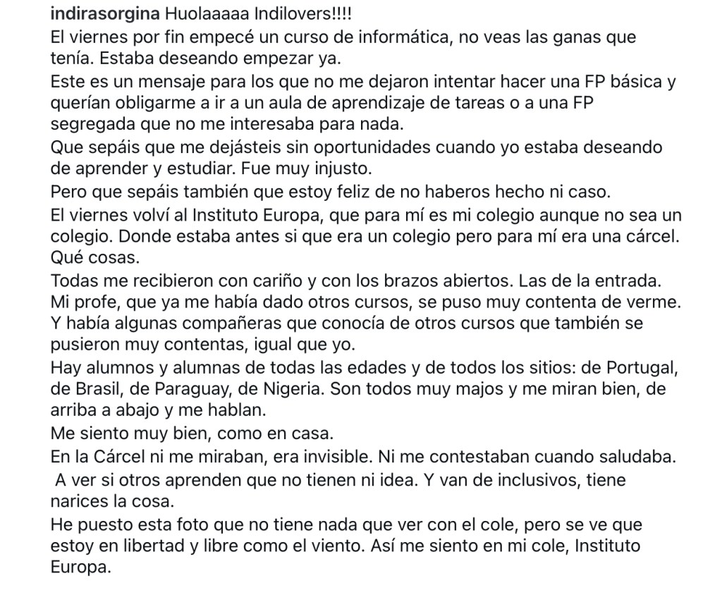 Acabo de leer esta publicación de Indira: